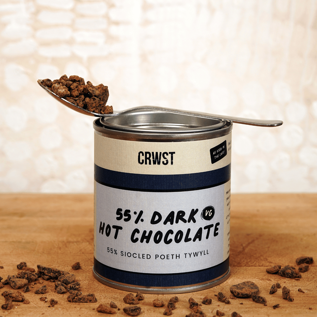 Crwst’s Vegan Hot Chocolate made using 55% dark Belgian chocolate for the ultimate chocolatey flavour!