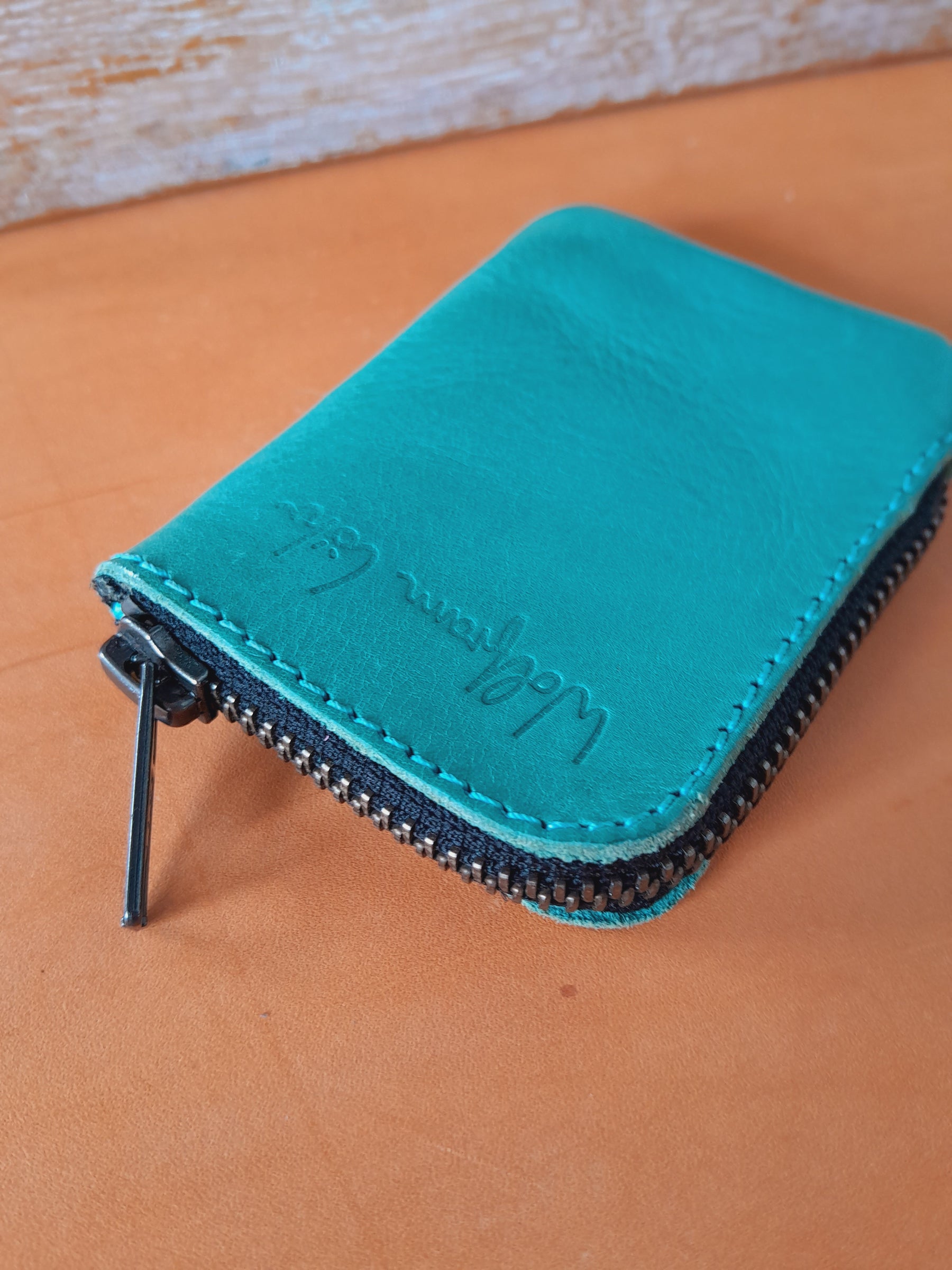Our leather card purse is a simple one pocket purse design. It has a corner zip for easy access. It can fit up to 10 cards in, expanding to accommodate them. Made with vegetable tanned leather. Handmade in Sussex.