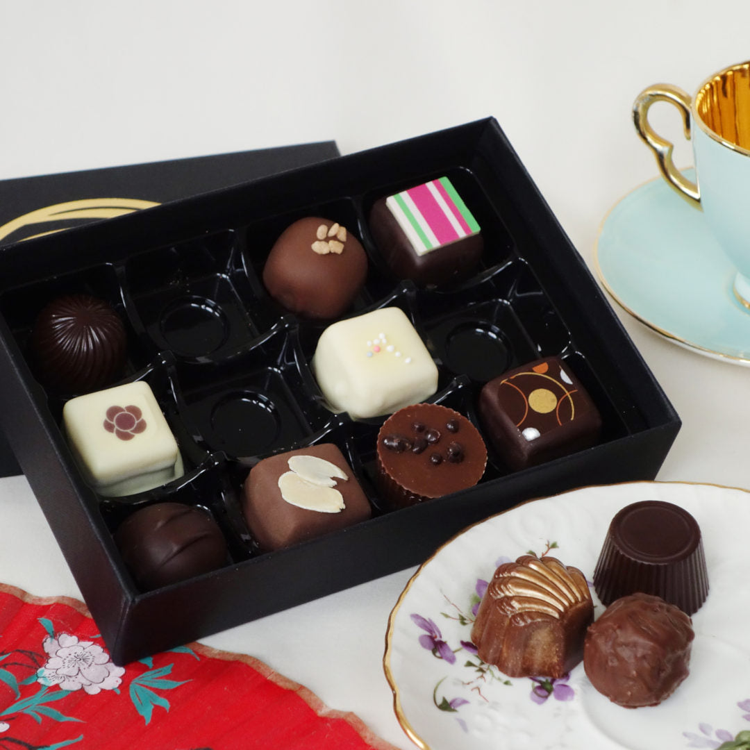 The classic selection contains a range of chocolates to suit all tastes and preferences. There are dark, milk and white chocolates. For those who like their chocolate pure and unadulterated we have our Dark and Milk Chocolate Truffles. For the nut lovers we have our Hazelnut Swirl and Honey and Almond. For the fruit lovers we have our Bitter Orange Caramel and Blackberry and Vanilla. We have caramel in the Bitter Orange Caramels, and nougat in the Honey and Almond. We have praline in the Hazelnut Swirl and pate de fruit in the Blackberry and Vanilla. We even have two vegan friendly options in this selection. If you are sharing the box, there is sure to be something for everyone. And if you are keeping it to yourself (my preference!), there is a different flavour and texture experience in every piece.