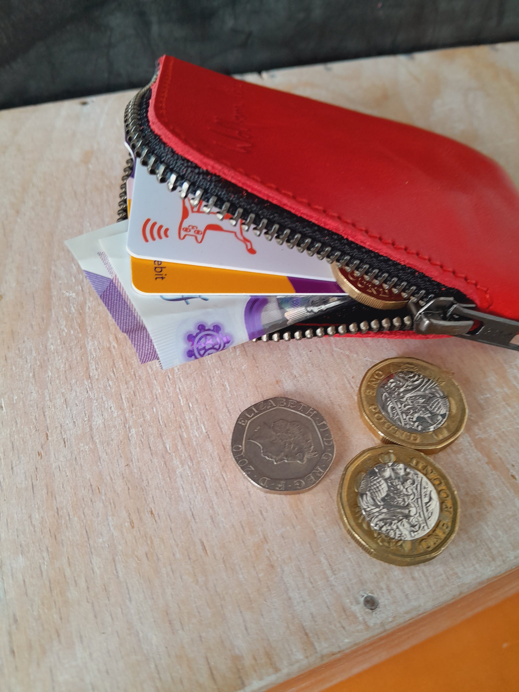 Our leather card purse is a simple one pocket purse design.  It has a corner zip for easy access.  It can fit up to 10 cards in, expanding to accommodate them. Made with vegetable tanned leather. Handmade in Sussex.