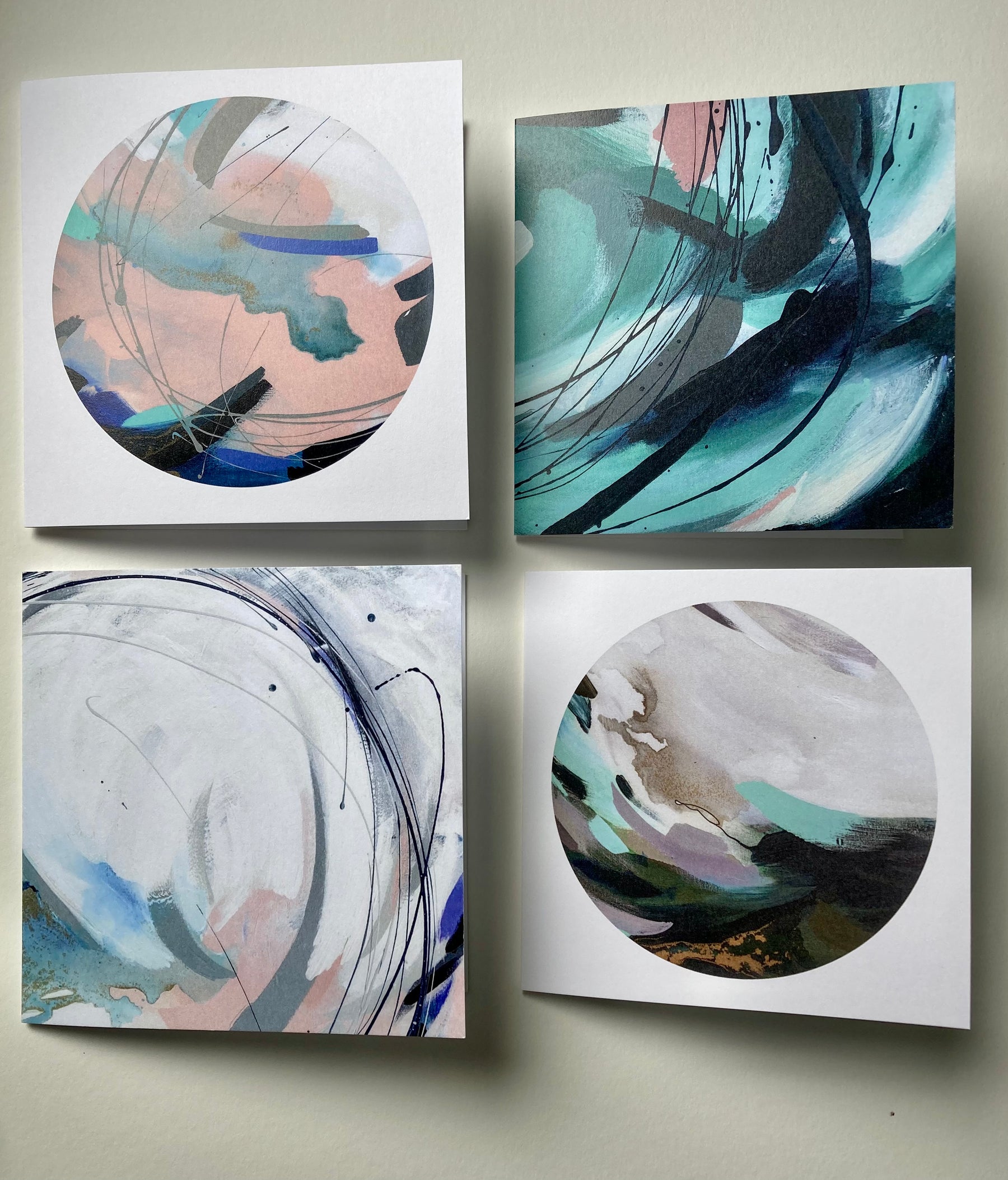 A selection of 4 cards showing elements from my original paintings made into cards.