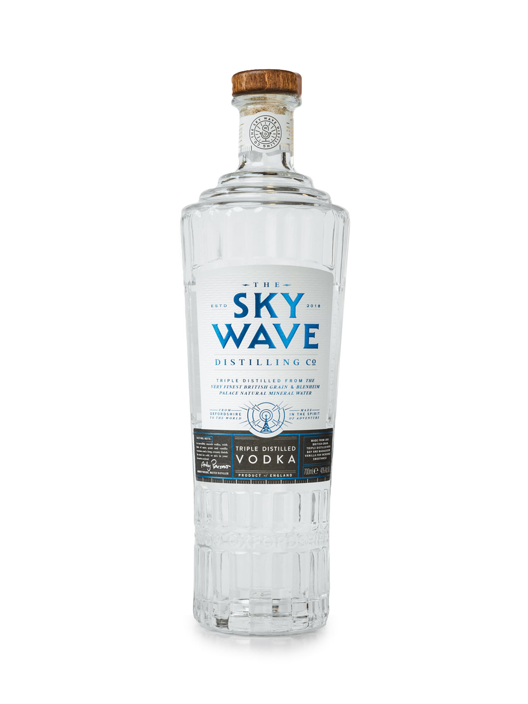 Master Distiller Andrew Parsons writes, "I am incredibly proud of our carefully developed recipe which delivers a smooth, creamy taste, partly helped by the use of Blenheim Palace Natural Mineral Water but also the slow, gentle distillation. We are famous at Sky Wave for our subtlety, and this is a smooth, subtle, delightful vodka."